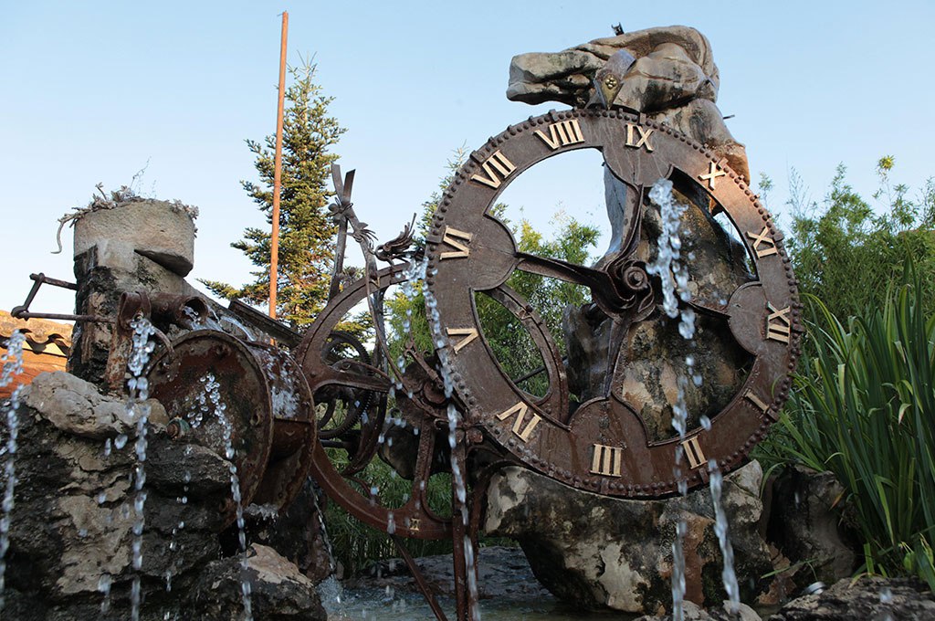En acabat, baixareu les escales cap al menjador, però no us perdeu la font del rellotge, que és el símbol de Can Traver.